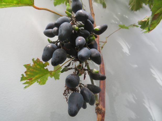 Grappe de raisins de la variété ‘ Phillip ‘, au jardin partagé l’Univert, quartier de la Goutte d’Or, 18e.