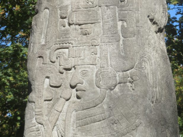 Belle stèle sur la tombe de Miguel Angel Asturias, poète et diplomate guatémaltèque, au cimetière du Père Lachaise, 20e.