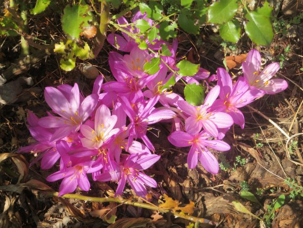 Colchiques ou crocus d’automne ? En pied d’arbres à l’entrée du jardin d’Eole, 18e.