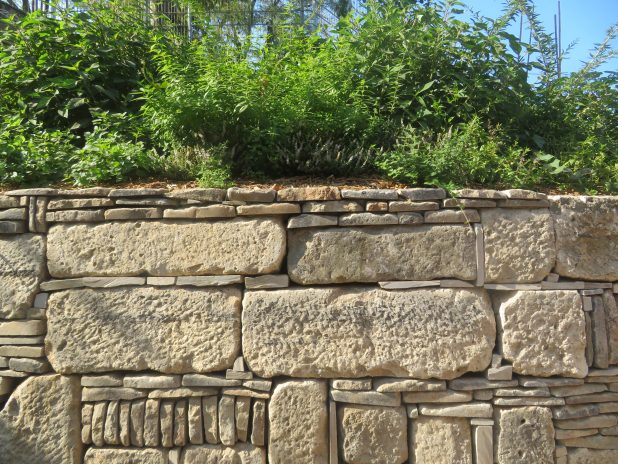 Bel appareillage de pierres dans un mur de la » ferme du rail « , sur la Petite ceinture du 19e, non loin du bassin de la Villette.