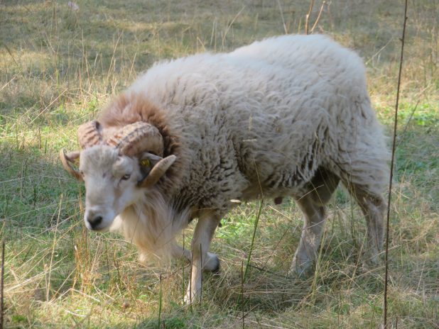 Impressionnant bélier, dans la prairie du parc de Chateaubriand, dans la Vallée aux Loups, 92.