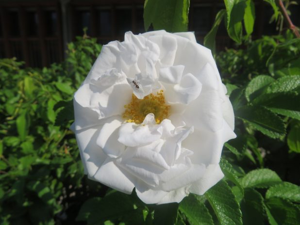 Rose et fourmi au jardin Françoise Hélène Jourda, quartier de la Chapelle, 18e.