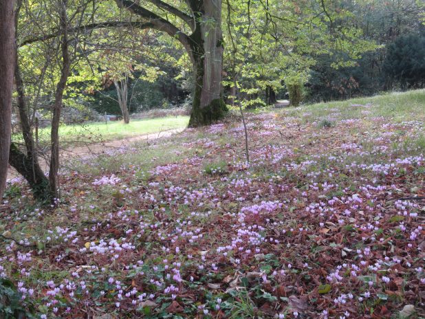 Tapis de cyclamen de Naples, au parc de Chateaubriand, dans la Vallée aux Loups, 92.