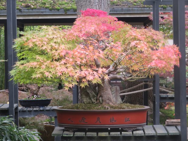 Bonsaï d’érable japonais en tenue automnale, au parc floral, 12e.