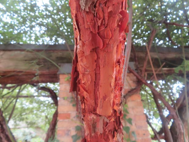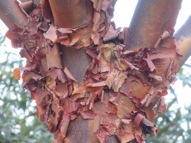 Desquamation imitant la cannelle, sur un Acer griseum, au parc de Bagatelle, 16e.