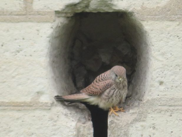 Faucon crécerelle posé sur le château de Vincennes, sur le chemin menant au Parc floral.