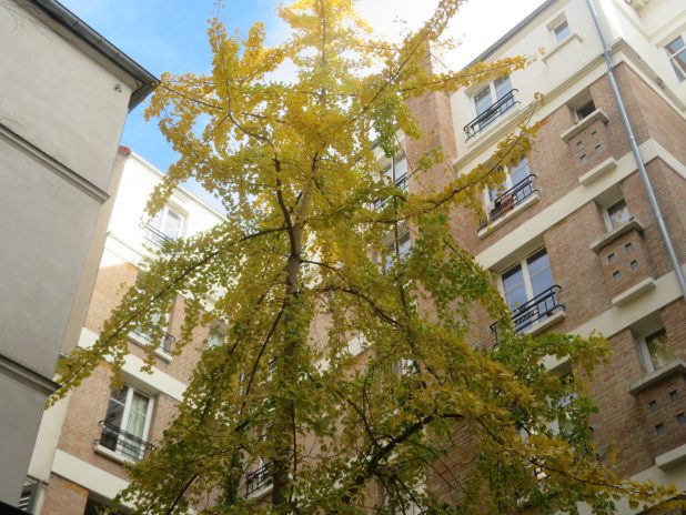 Gingko biloba en habit d’or, dans une cour du quartier de la Goutte d’Or, 18e.