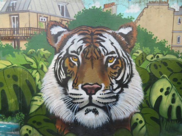 Beau visage d’un tigre, dans le square Léon, quartier de la Goutte d’Or, 18e.