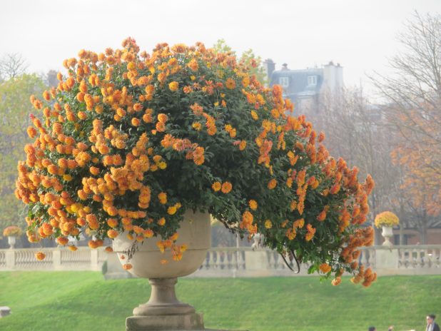 Belle potée de chrysanthème » cascade « , au jardin du Luxembourg, 6e.