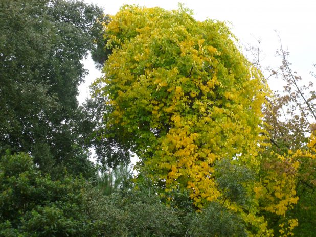 Bourreau des arbres, Celastrus orbiculatus, dans le jardin méditerranéen du parc de Bagatelle, 16e.