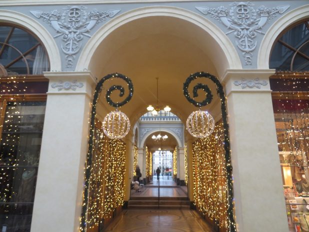 Passage Vivienne en habits de Noël, sur le parcours entre Palais Royal et rue du fbg Montmartre.