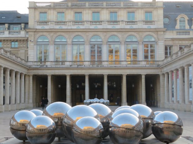 Sphérades de Pol Bury, au Palais Royal, sur le parcours des passages couverts de l’Ouest.