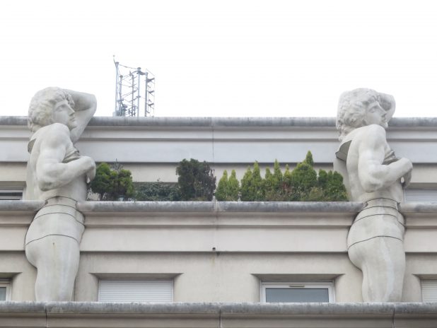 Esclaves mourants de Michel Ange, encadrant un balcon sur le commissariat Chalon, à la fin de la future balade dans le quartier de Reuilly, 12e.