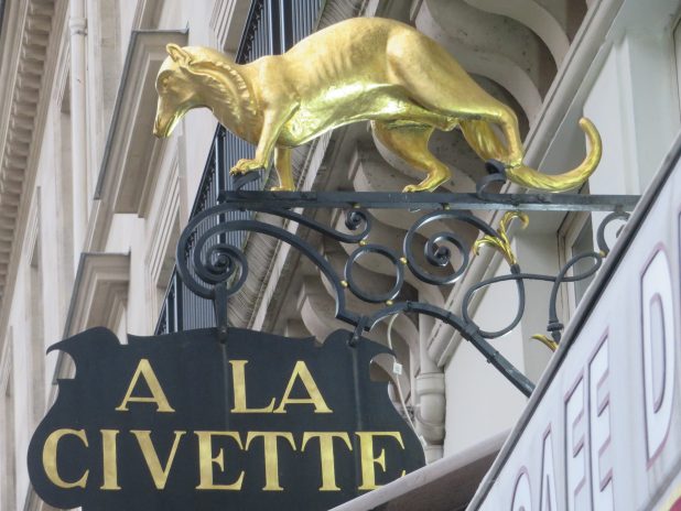 Civette dorée, enseigne d’un célèbre débit de tabac créé en 1716 près du Palais Royal, à la fin de la balade Paris centre.
