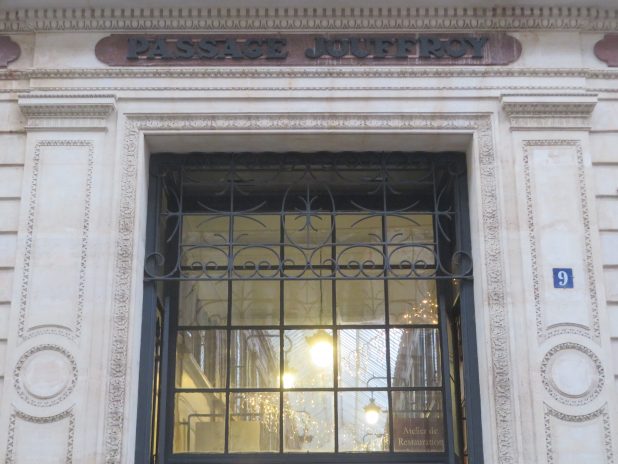 Entrée nord du passage Jouffroy, sur le trajet de la balade » passages couverts de l’ouest « .