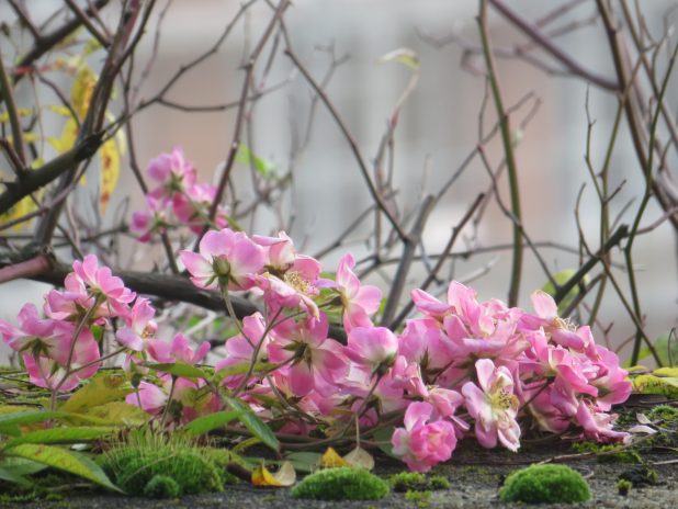 Bouquet de roses posé sur le mur d’enceinte de l’ancien jardin fleuriste de Marie Antoinette, dans le domaine de st Cloud, 92.