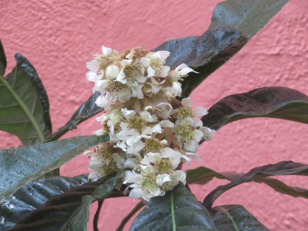 Floraison parfumé d’un néflier du Japon, dans le patio de l’ICI, quartier de la Goutte d’Or, 18e.