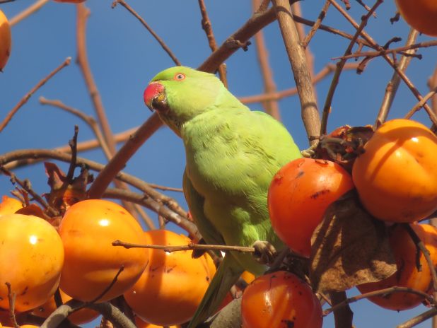 Perruche à collier au Paradis des kakis, à l’école du Breuil, 12e.