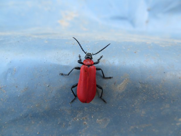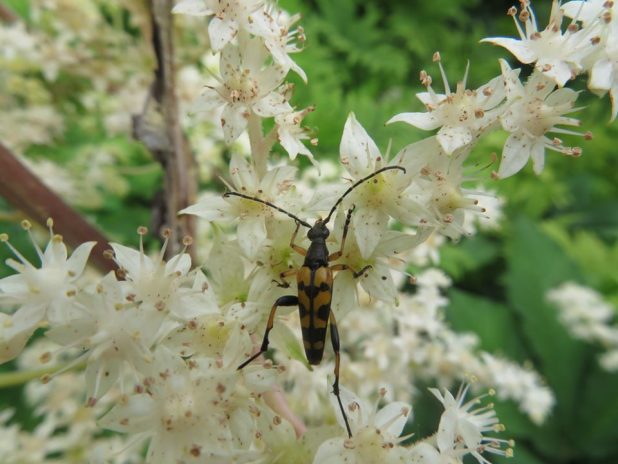 Beau lepture tacheté sur une inflorescence de Rodgersia, dans la pinède du Parc Floral, 12e.
