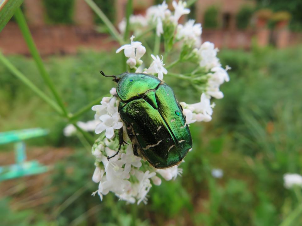 Cétoine dorée sur valériane officinale, dans le potager du Parc de Bercy, 12e.