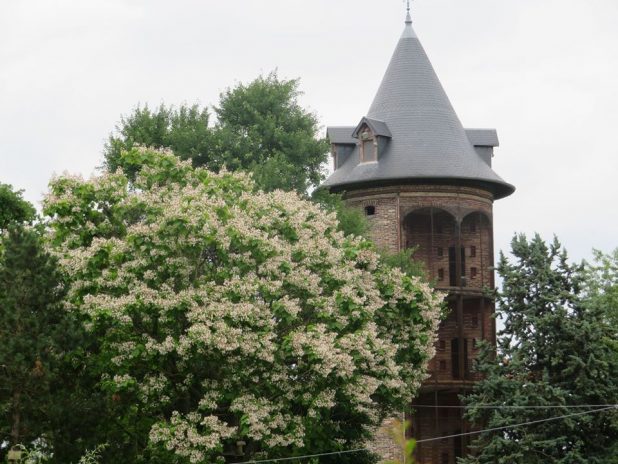 Catalpa bignonioides en fleurs, près du pigeonnier du jardin d’acclimatation, 16e.