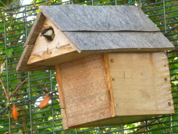 Nidification des mésanges charbonnières, au jardin partagé Ecobox, quartier de la Chapelle, 18e.