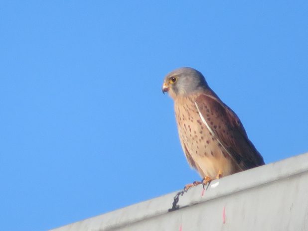 Beau faucon crécerelle mâle, dans le quartier de la Chapelle où nichent actuellement 2 couples.