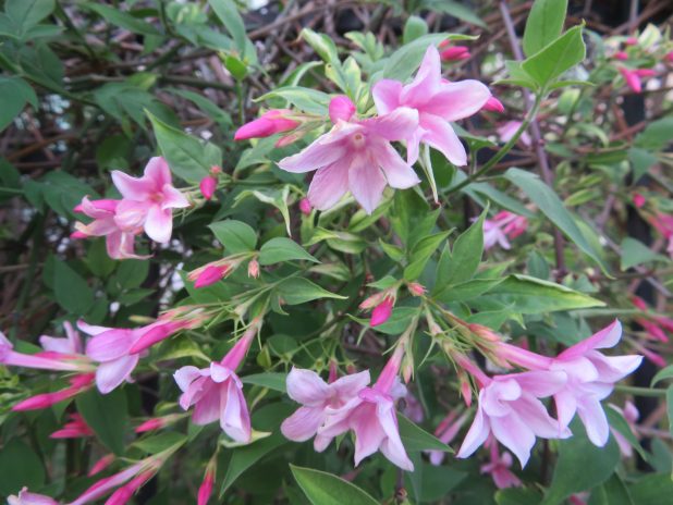 Jasmin hybride, Jasminum X stephanense, dans le quartier de la Chapelle, 18e.