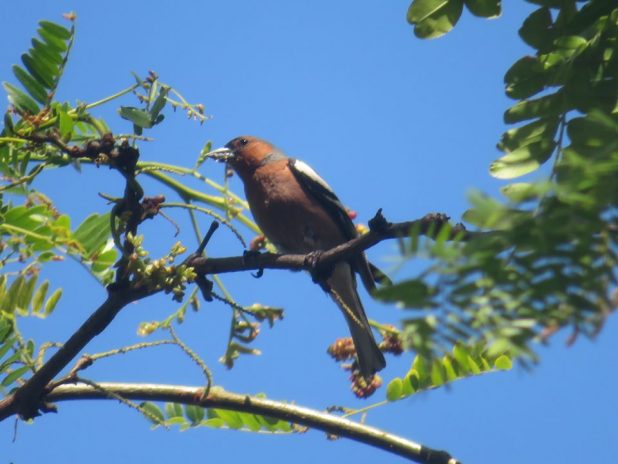 Pinson des arbres, dans un évier de la place Louis Baillot, quartier de la Goutte d’Or, 18e.
