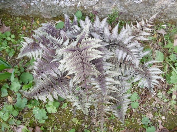 Fougère japonaise, Athyrium niponicum, au jardin de Bagatelle, 16e.