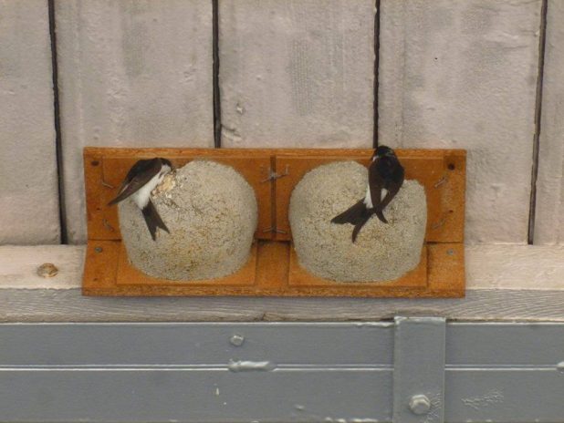 Nourrissage chez les hirondelles de fenêtre, sous la Grande halle du Parc de la Villette, 19e.