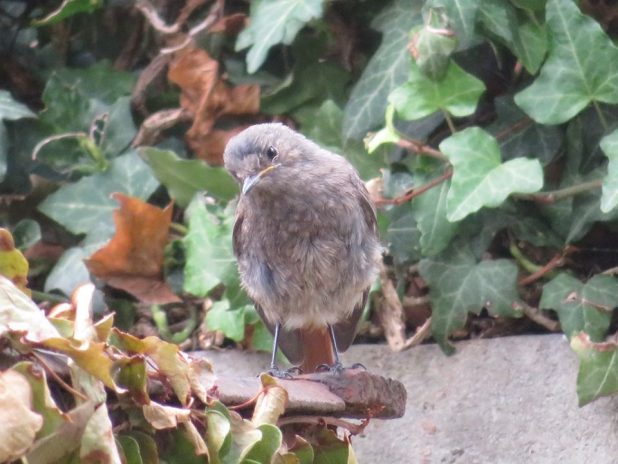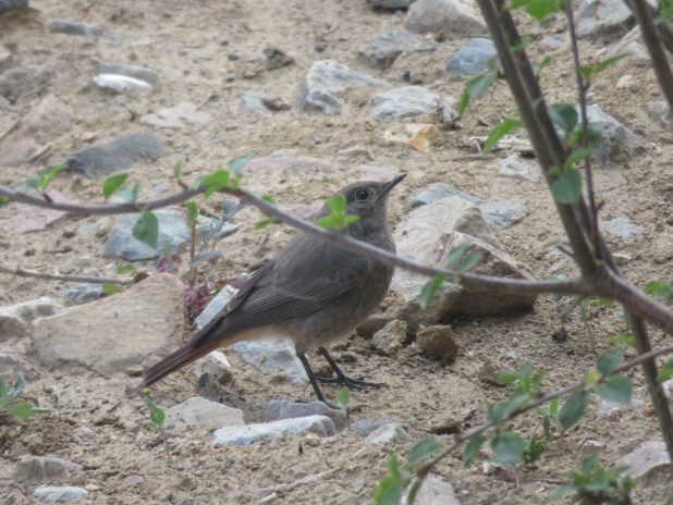 Rougequeue noir, Phoenicurus ochruros, femelle ou juvénile, dans le nouveau parc de la Chapelle Charbon, 18e.