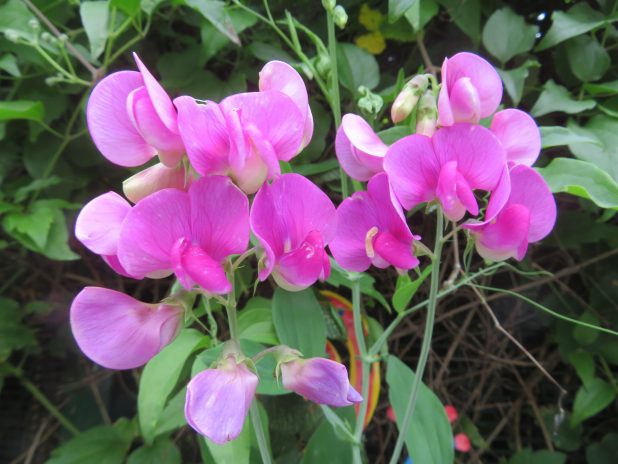 Pois vivace dans la haie séparant le jardin partagé Ecobox des voies de chemin de fer du Nord, quartier de la Chapelle, 18e.