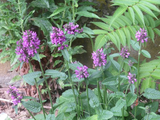 Touffe de bétoine, Stachys officinalis, dans le square Léon, quartier de la Goutte d’Or, 18e.