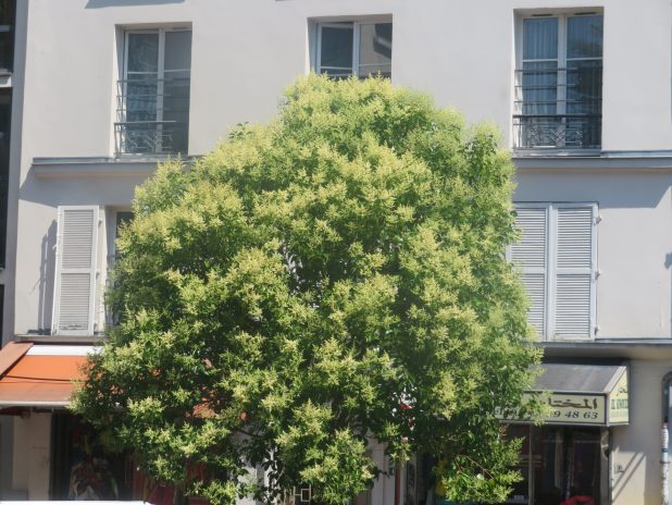 Beau troène de Chine en fleurs dans le quartier de la Goutte d’Or, 18e.