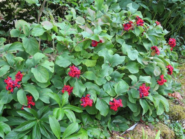 Fructification d’une pivoine obovata, dans le potager du parc de Bagatelle, 16e.