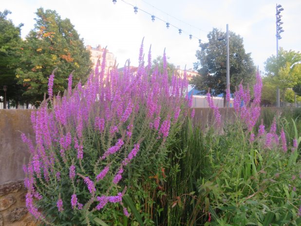 Belle touffe de salicaire dans le canal du jardin d’Eole, 18e.
