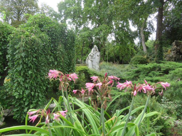 Grande cascade du parc de st Cloud, embellie de campanules sauvages, 92.