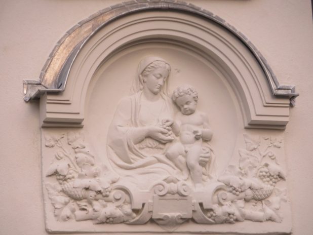 Joli bas relief dans la rue des Poissonniers, quartier de la Goutte d’Or, 18e.