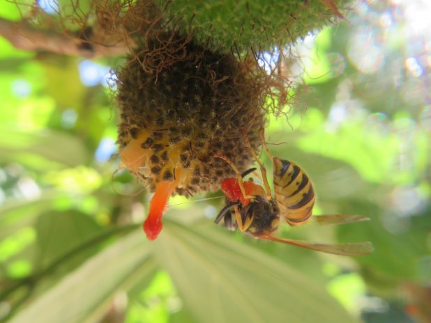 Guêpe se délectant d’un fruit de Broussonetia papyrifera, à l’arboretum du Breuil, 12e.