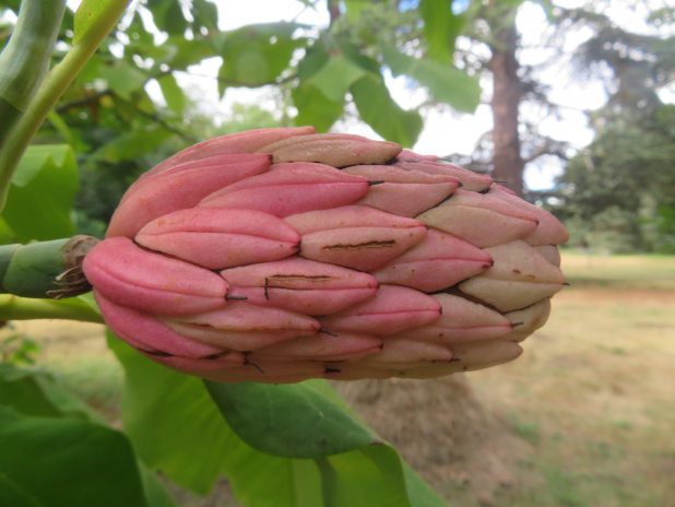 Fruit de Magnolia macrophylla dans le parc de la maison de Chateaubriand, 92.