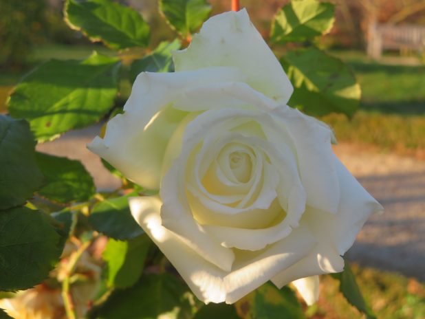 Rose ‘ Pape Jean Paul II ‘, parfumée dans la roseraie du parc de Bagatelle, 16e.