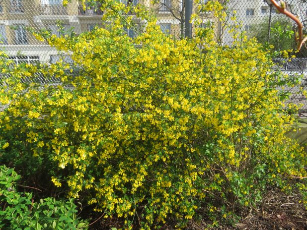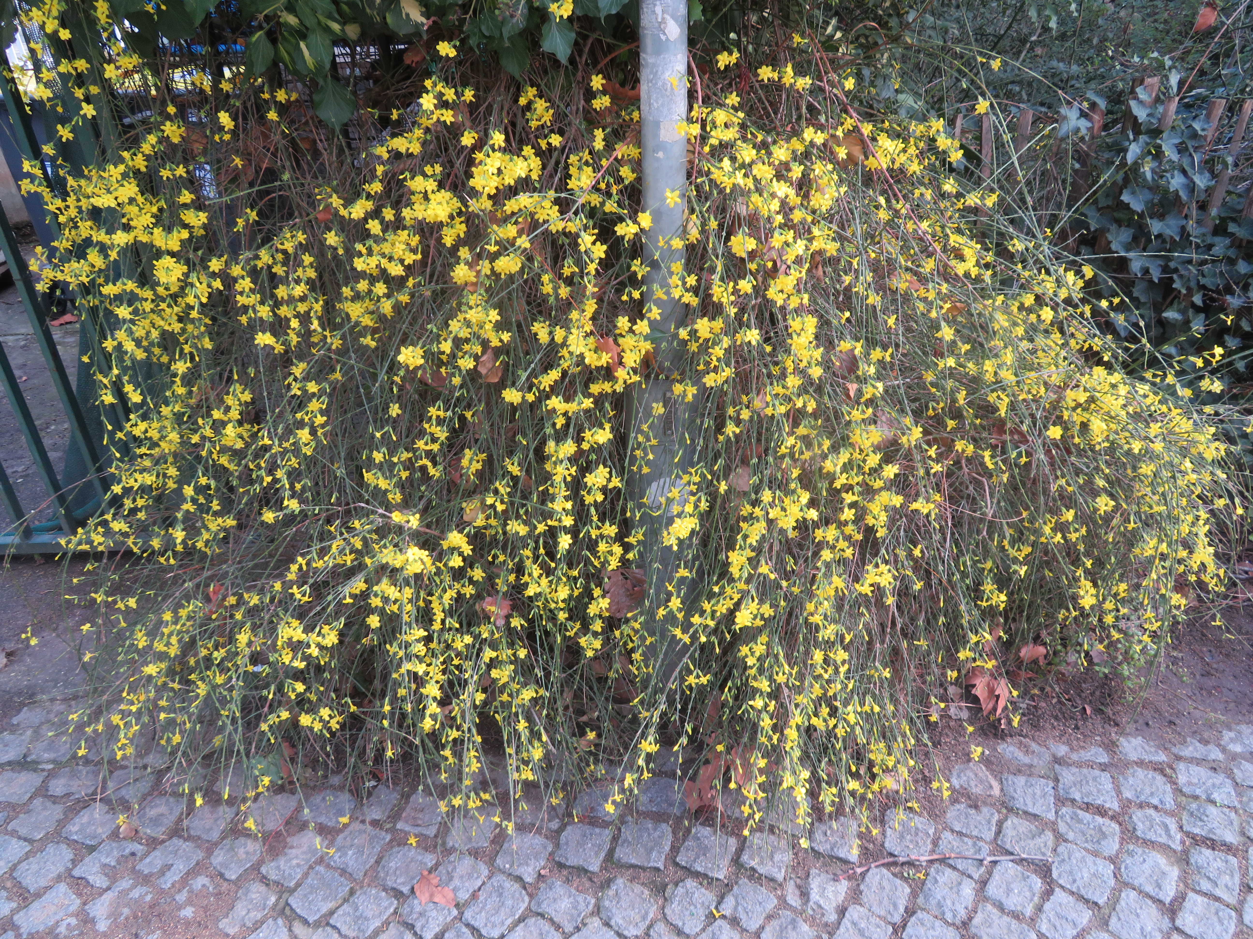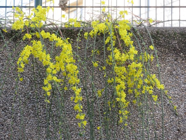 Jasmin d’hiver, en fleurs dans le jardin Villemin près du canal st Martin, 10e.
