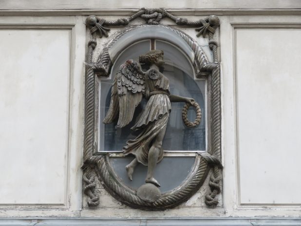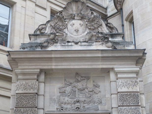 Allégorie de la fontaine des Innocents sur un immeuble du quartier des Halles, 1er.
