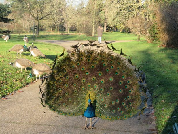 Même si la queue n’est pas entièrement repoussé, les parades ont commencé chez les paons des jardins de Bagatelle, 16e.