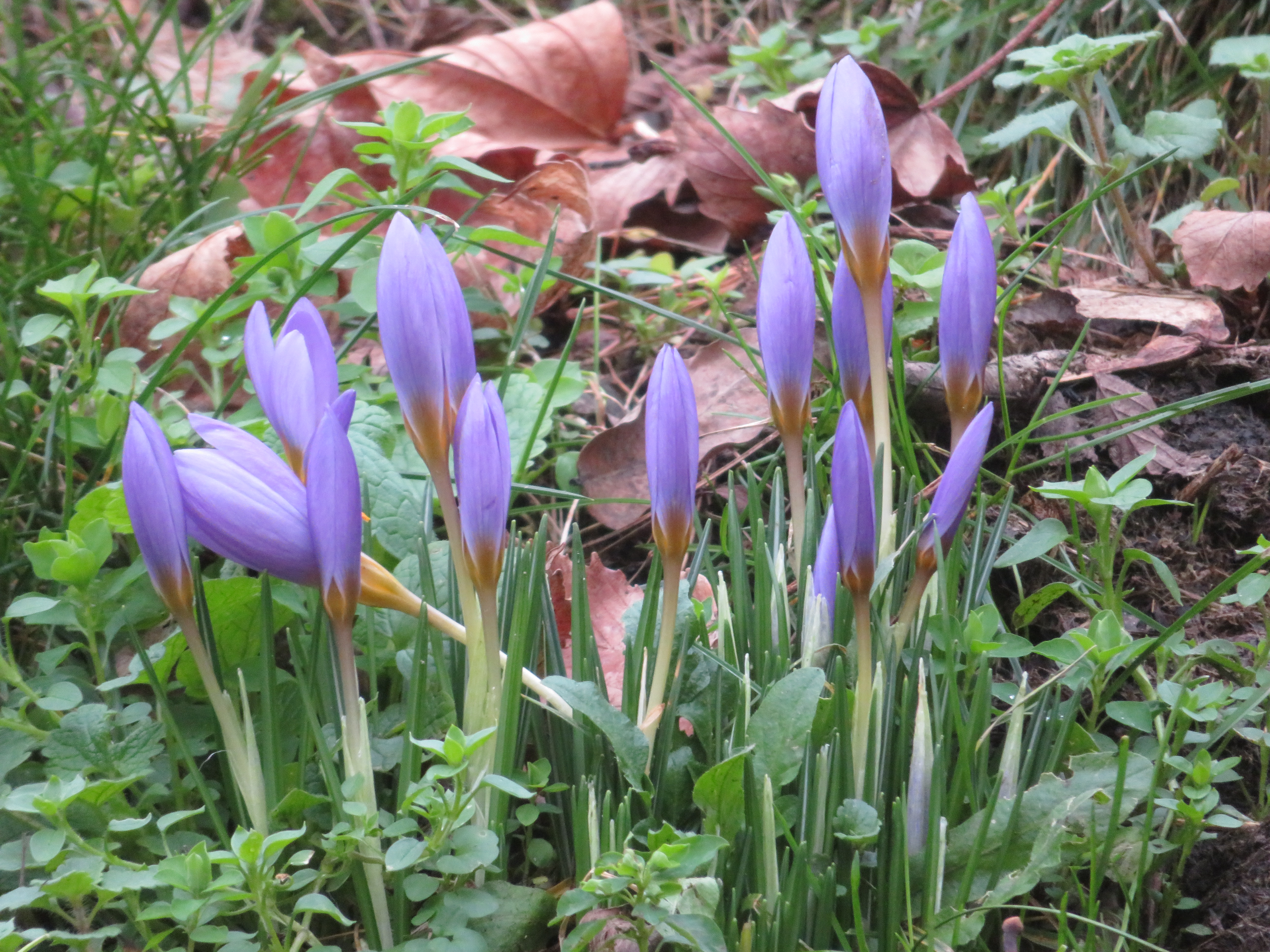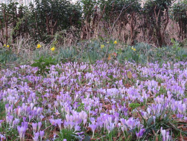 Première touffe de Crocus dans le jardin Louise Michel à Montmartre, 18e.
