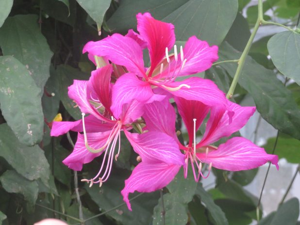 Bauhinia X blakeana, dans la serre contemporaine dédiée à l’Asie, au jardin d’Auteuil, 16e.