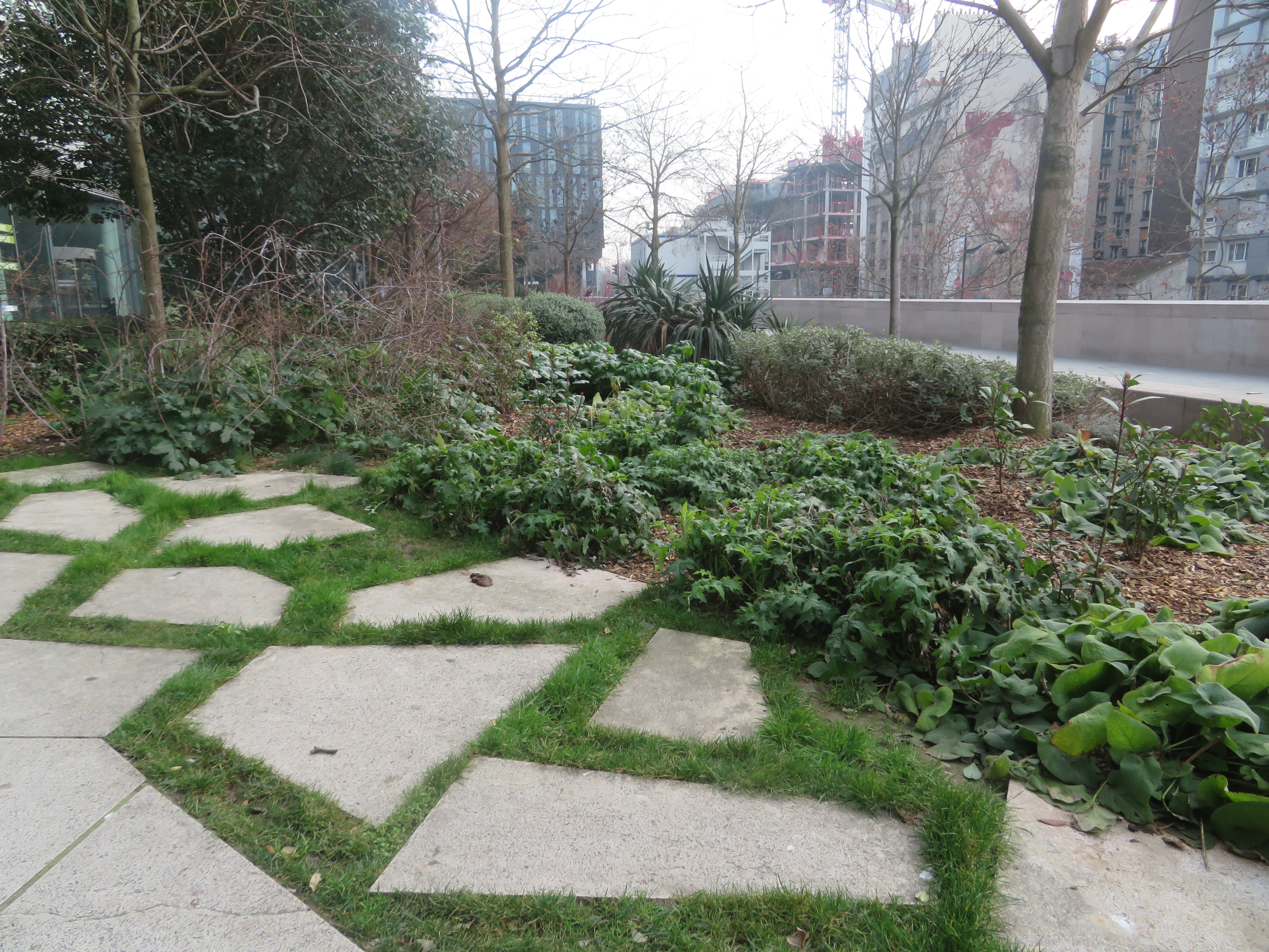 Bordure décousue dans le jardin » Charcot « , dans le quartier » Paris Rive Gauche « , 13e.