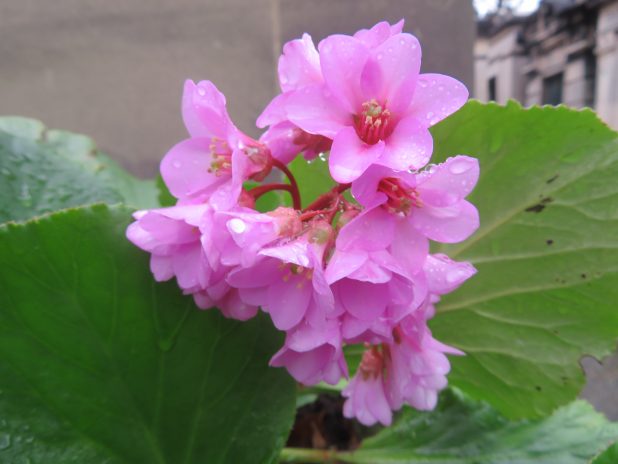 Belle touffe de Bergenia cordifolia près du pont du parc Monceau, 17e.