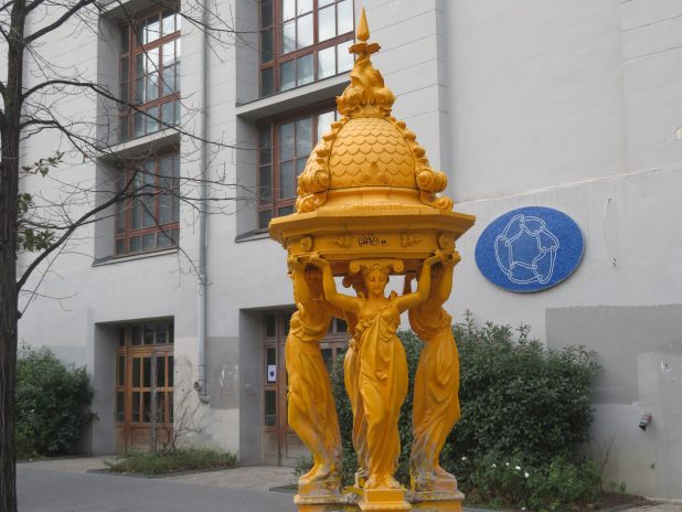 Fontaine Wallace atypique près des anciens grands moulins de Paris transformés en fac Diderot, 13e.